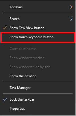 إظهار لوحة مفاتيح اللمس في ويندوز 10